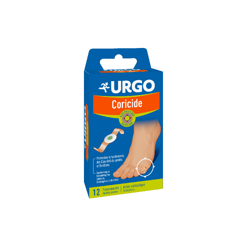 URGO Coricide, pansement. Ce dispositif médical est un produit de santé réglementé qui porte, au titre de cette réglementation, le marquage CE. Indication : Protection et traitement local d’appoint des cors, oeils de perdrix et durillons. Demandez conseil à votre médecin ou votre pharmacien et consultez la notice avant utilisation. Laboratoires URGO Healthcare. 09/2020
