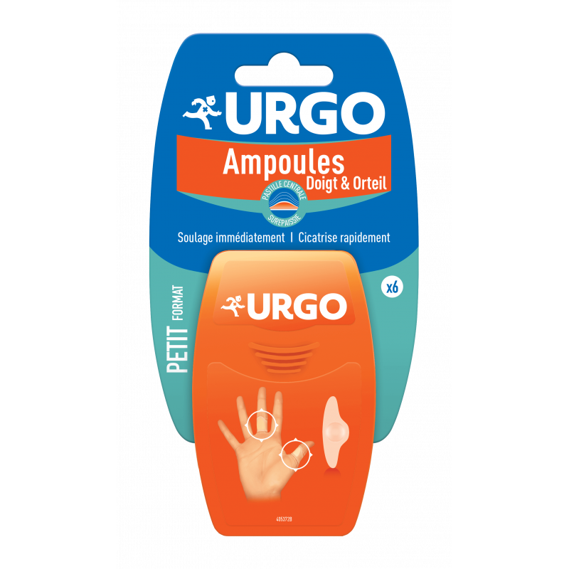 URGO Ampoules – Indication : Traitement de l’ampoule. Lire attentivement les instructions sur l'étiquetage ou la notice avant utilisation. Ce dispositif médical est un produit de santé réglementé qui porte, au titre de cette réglementation, le marquage CE. Laboratoires URGO Healthcare. 09/2020