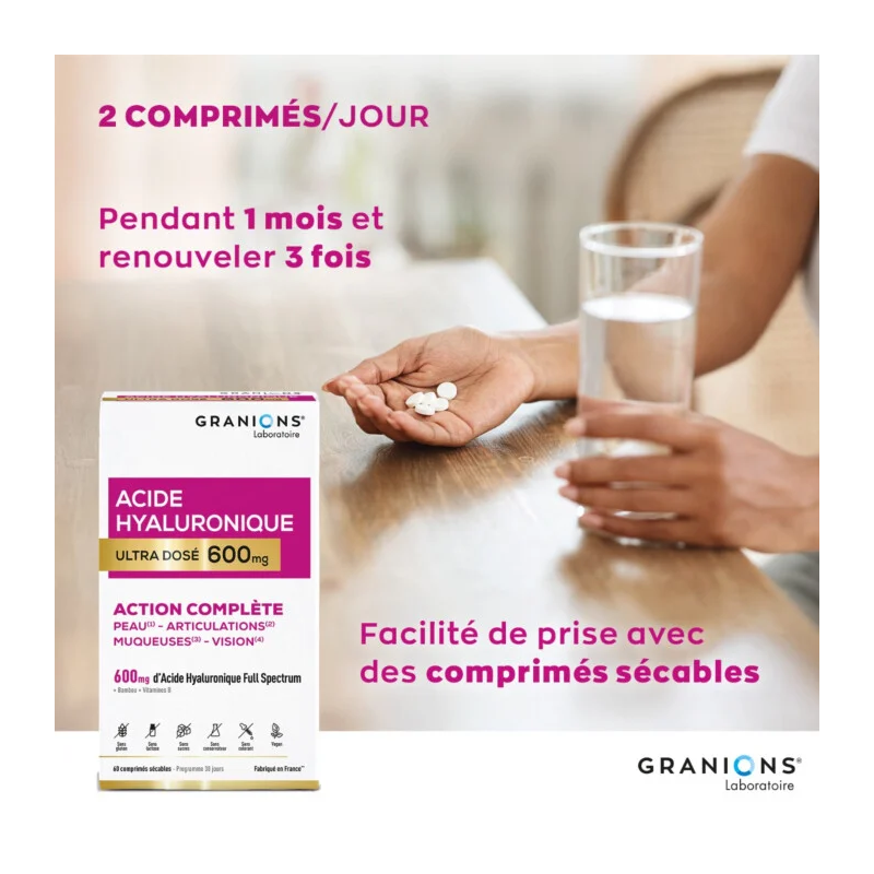 GRANIONS® Acide Hyaluronique 600 mg – La Beauté Intense, de l’Intérieur