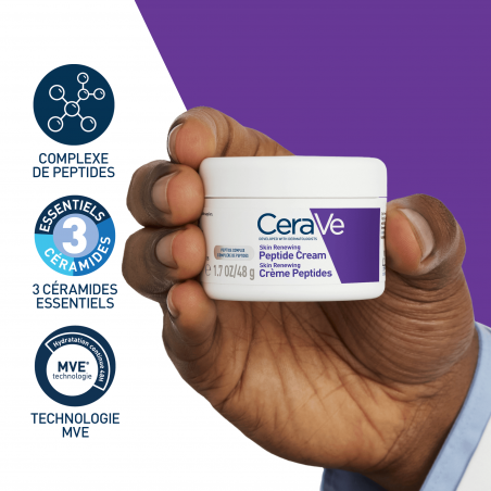 Développée avec des dermatologues, Skin Renewing Crème Peptides est conçue pour les premiers signes de l'âge. Elle est formulée avec du complexe de peptides, 3 céramides essentiels identiques à ceux de la peau et la technologie MVE. Elle raffermit visiblement pour une peau lisse et revitalisée, hydrate pendant 48 heures et restaure la barrière cutanée. Cette crème à la texture légère, non grasse et non collante, à absorption rapide, offre une peau visiblement raffermie en 2 semaines*. Convient pour tous types de peaux, mêmes les plus sensibles.