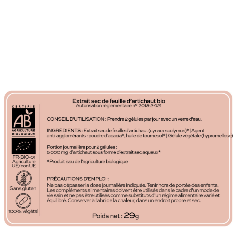 Pot de 60 gélules d’extrait sec d’Artichaut BIO.