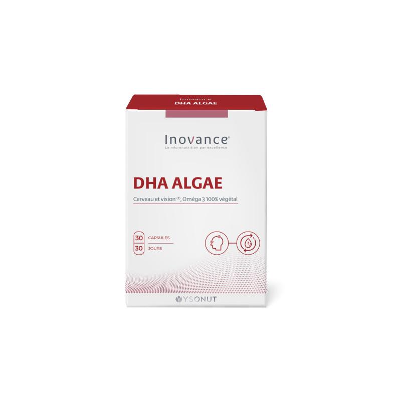 Huile extraite de Schizochytrium sp (antioxydants : mélange de tocophérols, extrait de romarin et palmitate d'ascorbyle, lécithine de tournesol) ; enveloppe d’origine végétale (amidon de maïs modifié IP, humectant : glycérol, gélifiant : carraghénane, régulateur d'acidité : carbonate de sodium).