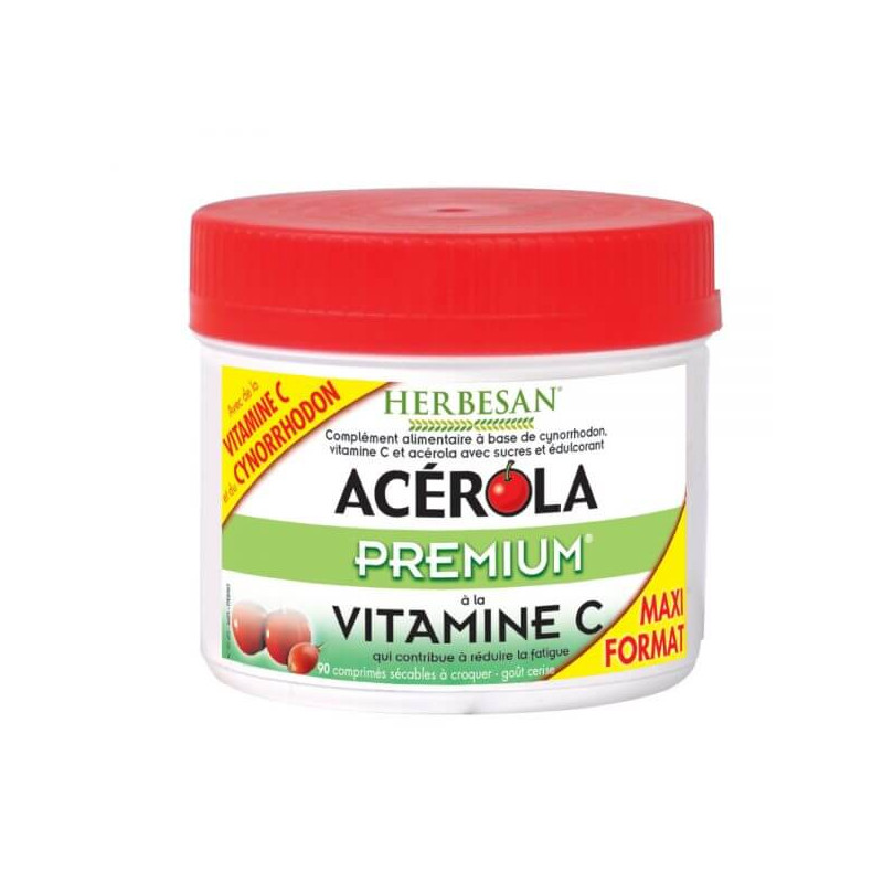 Acérola Premium à la Vitamine C qui contribue au fonctionnement normal du système immunitaire et contribue à réduire la fatigue.