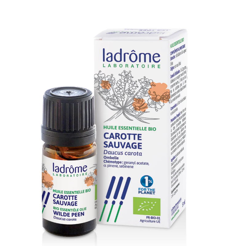 La Carotte sauvage est originaire d’Europe occidentale et d’Asie centrale, où elle est parfois considérée comme une « mauvaise herbe » qui pousse le long des routes, dans les prairies et sur les pentes montagneuses. Sa racine blanche, moelleuse et non comestible diffère grandement de la racine orange et comestible de la carotte cultivée. Elle fleurit en fleurs blanche et plates, semblables à de la dentelle, regroupées en ombelles, avec un point central violet. Après distillation à la vapeur d’eau, les ombelles donnent une huile essentielle jaune clair à l’arôme épicé, boisé et terreux.