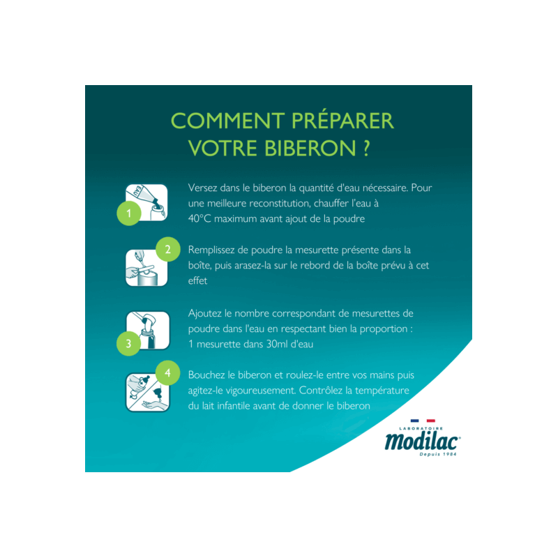 Modilac Bio 1 Lf+ a été élaboré pour répondre aux besoins nutritionnels spécifiques de votre bébé dès la naissance ou en relais de l’allaitement. Modilac Bio 1 Lf+ répond aux exigences de l’agriculture biologique.