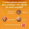 Les compléments alimentaires doivent être utilisés dans le cadre d’une alimentation variée et équilibrée et d’un mode de vie sain. Réservé aux adultes, tenir hors de portée des enfants. Les personnes sous surveillance médicale doivent demander conseil à leur médecin avant de prendre un complément alimentaire. Déconseillé aux femmes enceintes ou allaitantes. Respecter la dose journalière indiquée. 1Les vitamines C, E, B2, le sélénium et le cuivre contribuent à protéger les cellules contre le stress oxydatif.