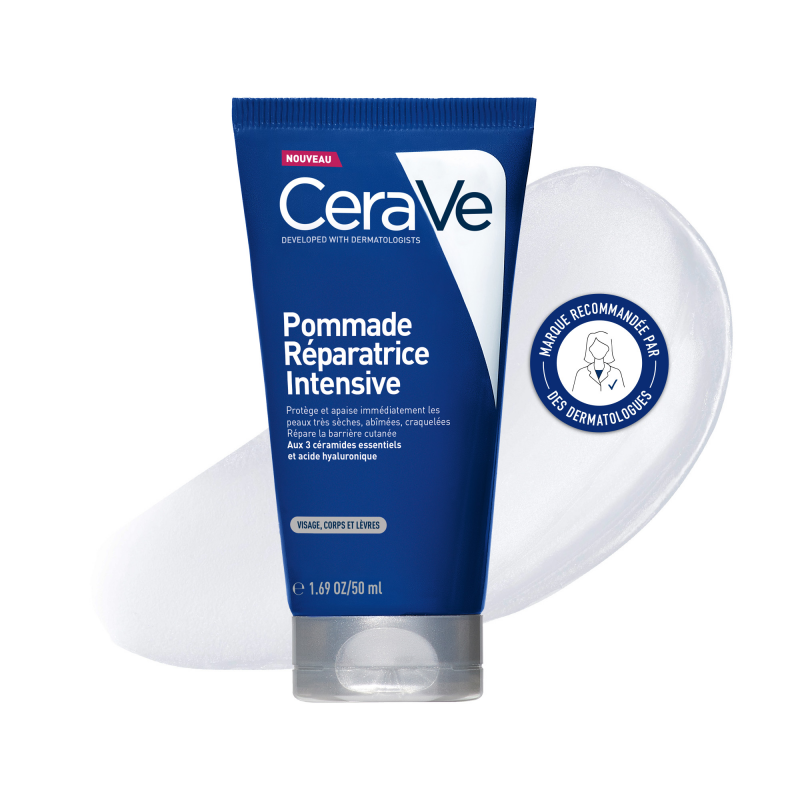 Développé avec des dermatologues, la Pommade Réparatrice Intensive protège et apaise immédiatement les peaux très sèches, abîmées, craquelées. Ce soin enrichi aux 3 céramides essentiels naturellement présents dans la peau et à l'acide hyaluronique restaure la barrière cutanée. La texture pommade semi-occlusive forme une barrière protectrice, comme un effet pansement, pour protéger les peaux abîmées tout en permettant à la peau de "respirer". Enfin, le panthénol permet d'apaiser immédiatement la peau. Formule multi-usages visage, corps et lèvres. Sans parfum. Sans alcool. Hypoallergénique. Texture transparente non collante. Pour toute la famille.