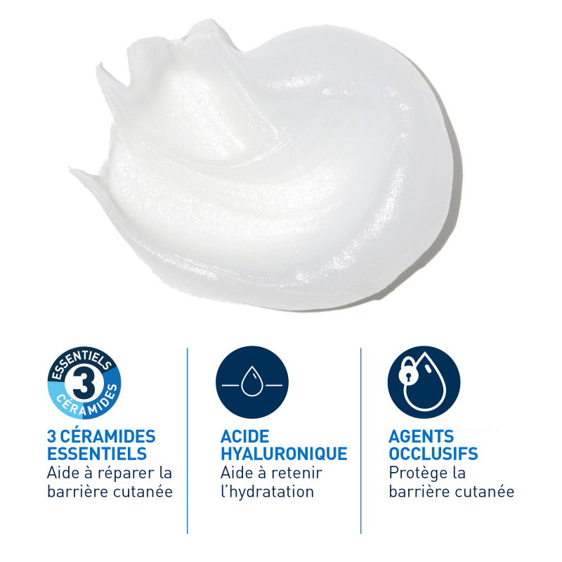Formule enrichie aux 3 céramides essentiels et à l'acide hyaluronique pour restaurer la barrière cutanée. Texture pommade semi-occlusive pour protéger les peaux abîmées.