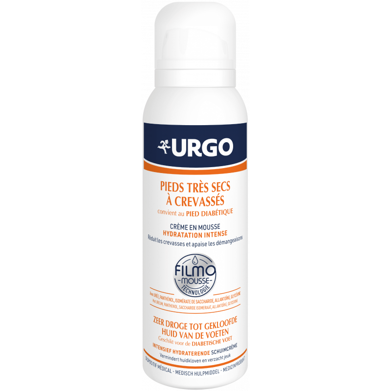 URGO Filmomousse Hydratante Intensive , 2 fois par jour et masser les zones affectées du pied.