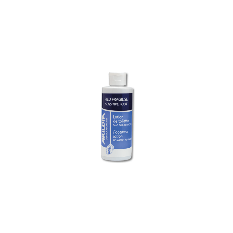 La Lotion de toilette AKILDIA® nettoie l’épiderme des pieds, désodorise et contient des huiles essentielles bactéricides. Les pieds sont alors propres et délicatement parfumés.