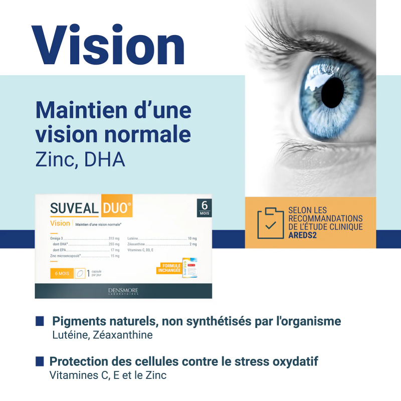 Participe au maintien d'une vision normale* et recommandé en cas de vieillissement oculaire.